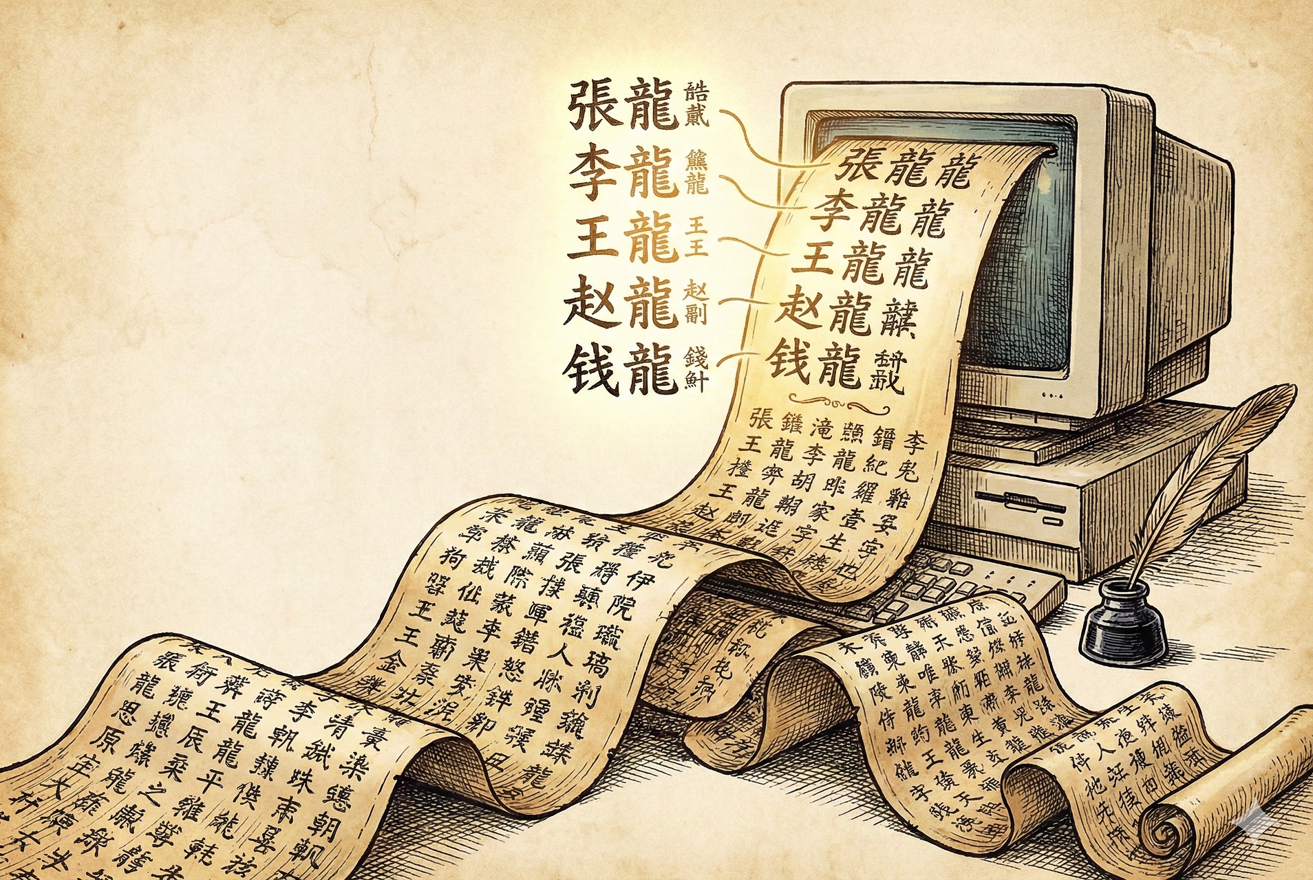 给小说人物起名字这事呢,就更麻烦了。使用常用名呢,比如张三、李四、王五,一看就觉得是假的,就不像真的。一些主要人物呢,会根据人物特性,这个作者会认真地起一个名字。如果使用历史名人的名字,很容易出戏。这个人叫成吉思汗,他这一看就出戏了,这个历史人物的各种生平和人设一下就套到你这本书上去了。即使你想写一个跟他的人设很相近的人物,那也大家也会觉得很奇怪的。所以通常呢,历史名人的名字都会被避讳起来。所以为了能够编出大量的名字出来,1万人名字的这个文档就变得非常非常重要了。使用新名字不容易出戏,不容易出戏可以构建新的人设。相同的名字,通常代表相似的性格与人设。