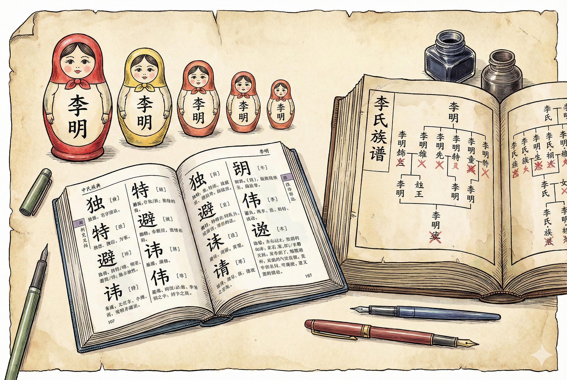 欧美人的话,甚至喜欢用祖辈、明星、圣徒的名字来给自己的孩子取名字,所以对于他们来说,重名也不是什么特别奇怪的事情。而中国人呢,在这块算是比较奇葩的,中国的名字大多跟避讳相关。你从来没有听说谁儿子起父亲的名字,或者孙子用爷爷的名字,这个在中国是不行的。所以只要出现同名,就会觉得奇奇怪怪的,就干脆使用这个名字大全里的名字就完事了。谁都不愿意签名,谁都不愿意把自己家人的名字贡献出来,咱们就找这样的一批名字来用。而且呢,看着就像真的,因为这些名字本来就是为网文创作编写的。