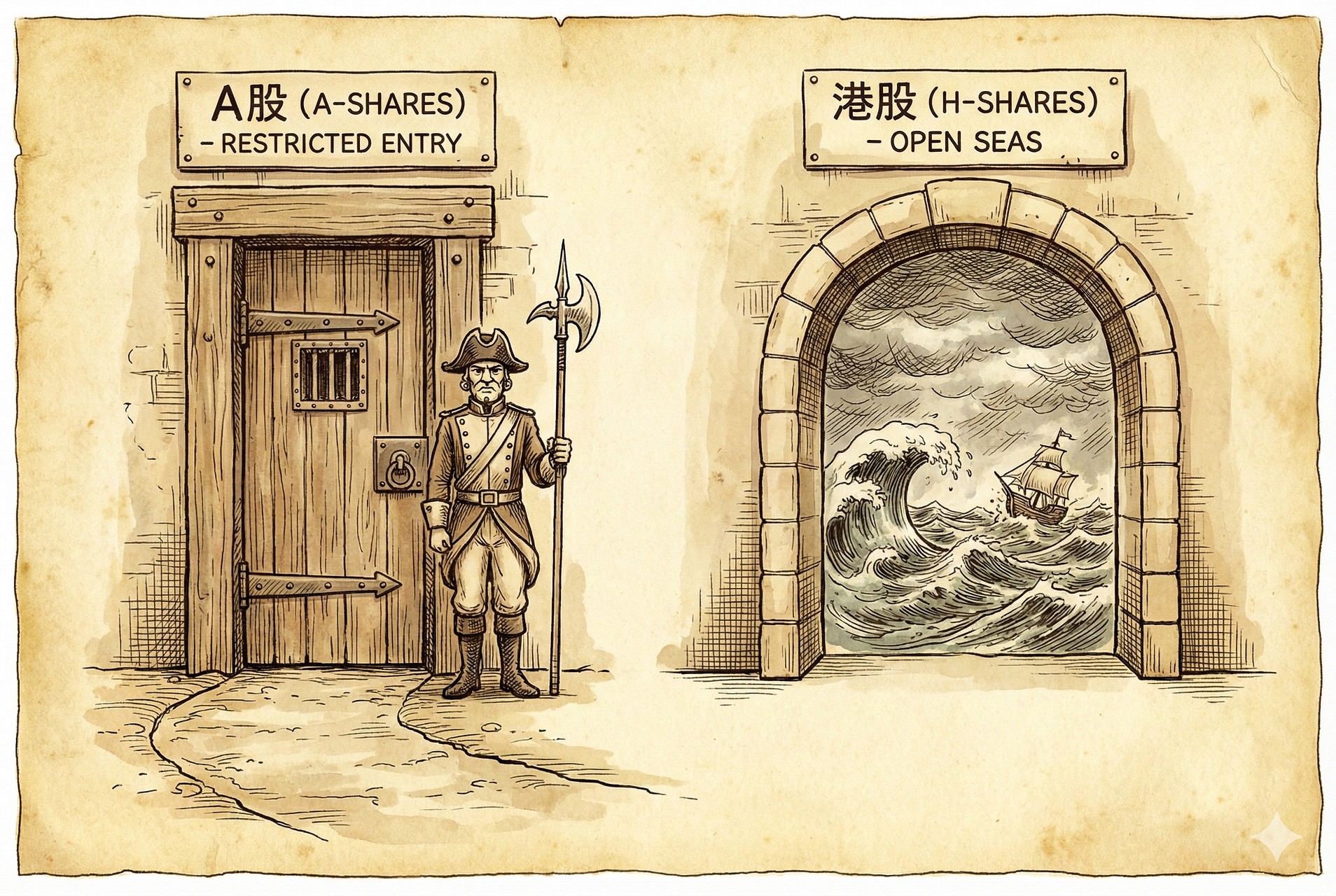 A股呢它属于严进宽出,这跟中国大学似的,考大学很难,但是呢你只要考上了就可以躺平了。当然前提是你说我后边不要保研了,没有后边的想法了,你就可以躺平了,基本上都能轰毕业。港股呢属于叫宽进严出,就有点像美国的大学,想进来很容易,但是呢你想毕业很费劲。而且关系够硬的才能上A股,因为上A股就是要割韭菜去的,你上港股未必能割到韭菜,肯定是A股韭菜多嘛,因为它是一个稀缺性市场。为什么不是说我生意做得足够好、我的公司的功底足够硬我才能够在A股割韭菜呢?咱们想想当时在西游记路上,能够从孙悟空金箍棒下活下来的都是什么样的妖怪?未必是武艺高强的,关键还是身后的后台要够硬的,他们才能够在孙悟空面前走一遭,最后能活下来。A股是一个制度保护下的稀缺的标的市场,你只要上去了就可以割韭菜。所以最后看看谁的这个后台够硬,咱们就上A股;后台不够硬的,咱们就上港股。