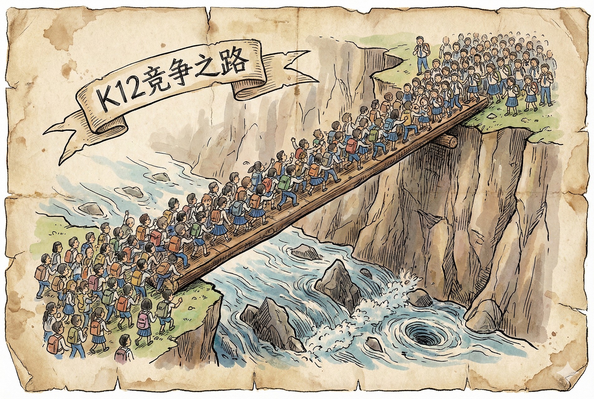 那下一个问题,K12体系是不是可以被干掉了呢?很难。首先我们要想清楚,教育到底是干什么的?很多人说教育就是教孩子一些东西,让孩子能够有知识。不对,教育不是干这件事的,教育是为社会分配机制进行筛选和人员匹配的。大家想一想是不是这样?你去上了大学,上了名校,才可以去大厂;你如果连名校都没上过,你连35岁被裁掉的机会都没有。所以最终我们是要去社会上去抢这些萝卜坑的。中国人为什么要去千军万马挤独木桥呢?这个其实就可以看到教育的本质了。我们没有给那些挤不过独木桥的人,在分配体制中留下稳定的位置。