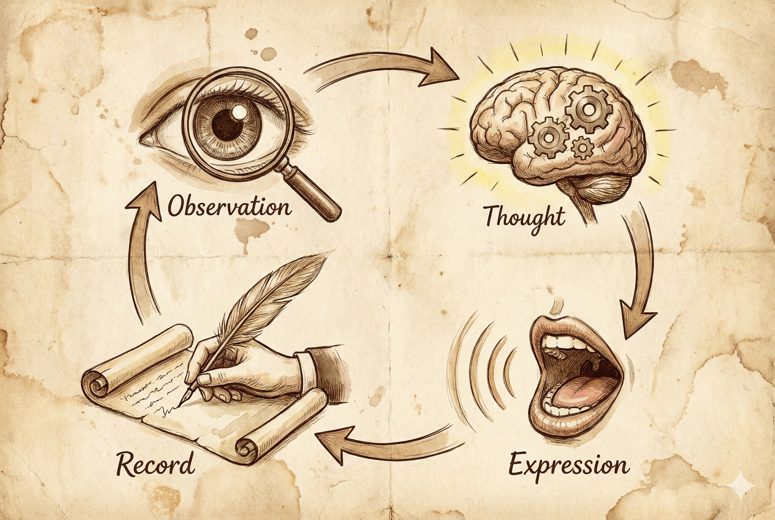 流程大概是:充满好奇心的观察 -> 思考并探究细节与原理 -> 形成完整的故事架构 -> 存储故事素材 -> 寻找合适的时机将正确的故事讲给正确的人 -> 获得反馈 -> 继续寻找新故事。