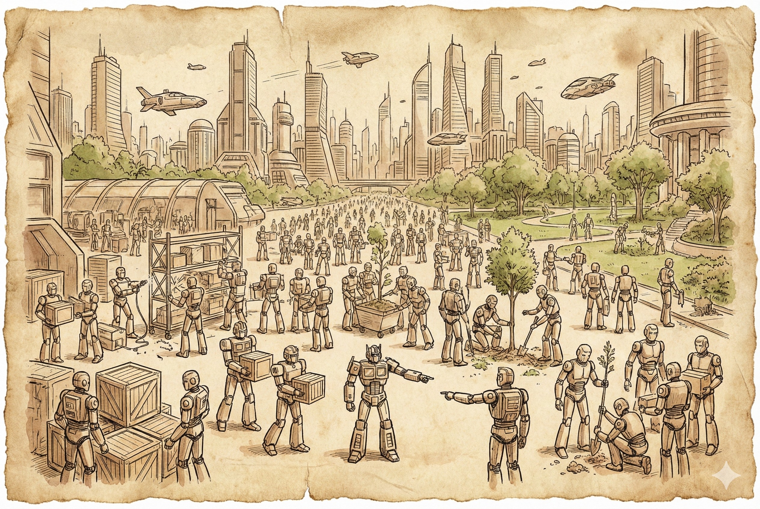 人类社会将实现普遍高收入。机器人和AI使劳动力的成本趋近于零,没有成本就可以造出各种各样的东西来了,商品和服务将极度廉价且充沛,人们可以拥有任何想要的东西。