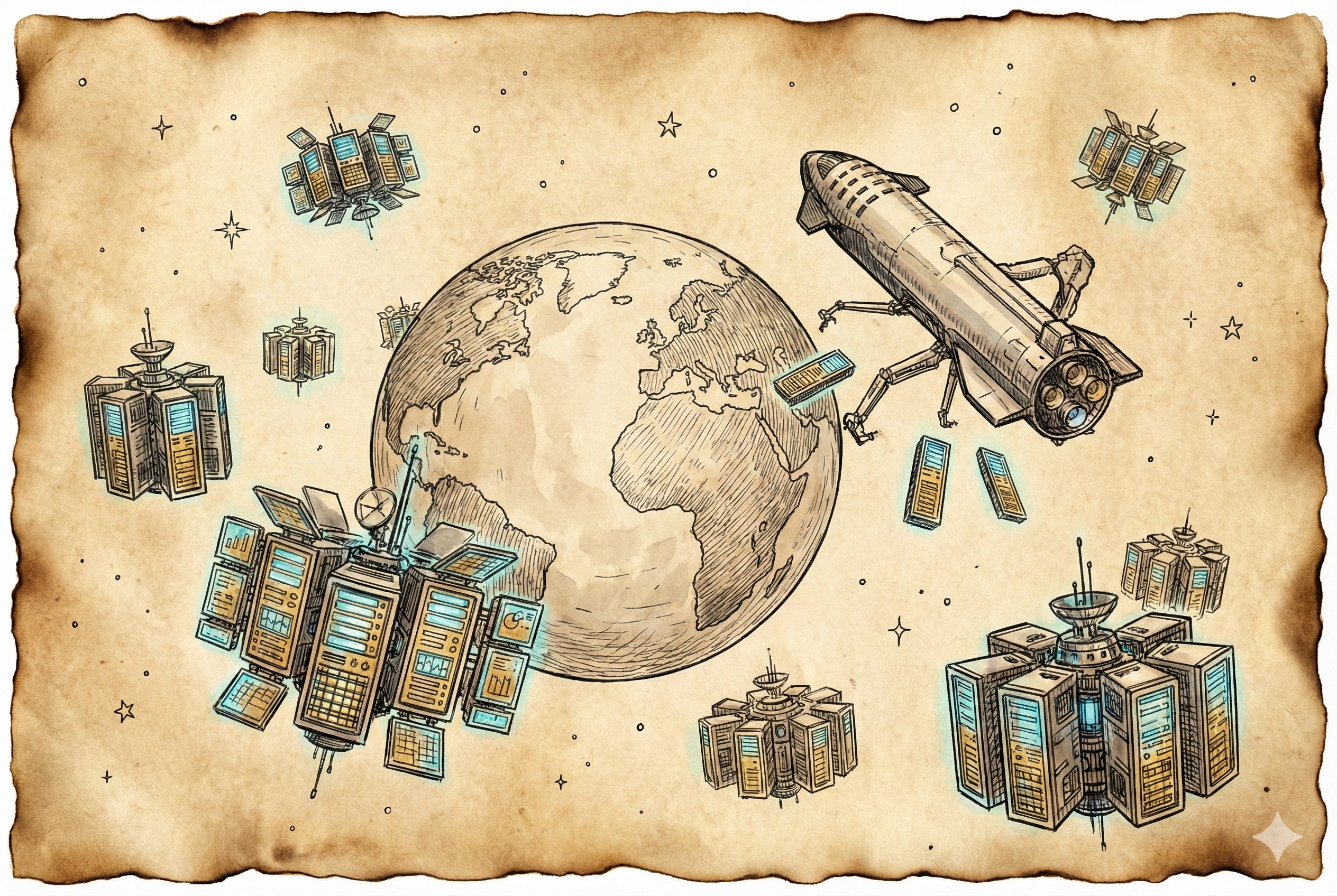 大家注意他讲的是“卫星群”,而不是一个集中的算力中心。现在太空算力中心有两个路径:一个是以创业公司Starcloud以及谷歌为代表的集中式的算力中心,就是做一个4公里乘4公里这个面积的太阳能板,发完电了以后,所有的算力卫星集中在一起进行统一的运算;另外一个就是SpaceX以及中国现在所使用的这种分散算力中心,就是把大量的计算卫星直接发射到天上去,让他们各自为战,自己去进行运算。所以现在基本上是两个路径,而马斯克讲到的AI算力卫星群就是分散的这个路径。