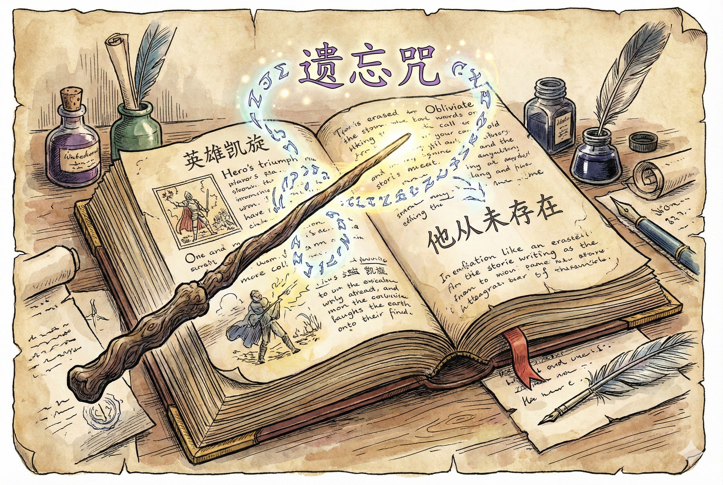 所以它这里头存在这么多的可疑的地方,让我想起来《哈利·波特》里头有一部,那有一个老师就是最喜欢用遗忘咒。每一次听了别人的故事以后,用遗忘咒让人忘掉,就把这些事都写成自己的,然后成为了一个很优秀的作家的一个故事。